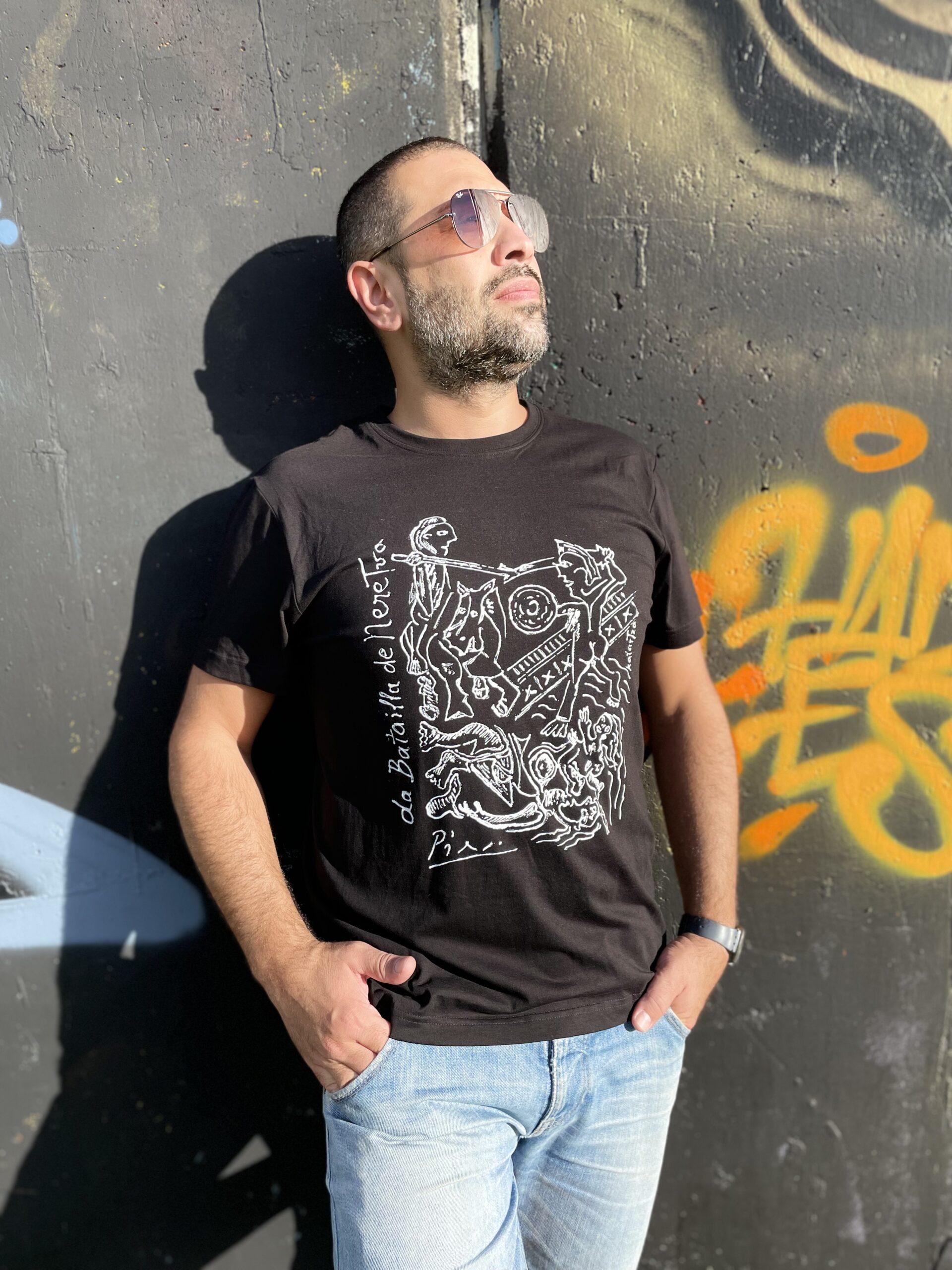 40,00KMMajica „Bitka na Neretvi“ je monohromatski oslikan motiv Picassovog postera za film „Bitka na Neretvi“ Veljka Bulajića. Upoznali su se u Monte Carlu prilikom premijere Bulajićevog filma „Skopje 63“ koji je govorio o katastrofalnom potresu. Zanimljivo je da Picasso nije želio novčanu kompenzaciju za svoj rad, već je tražio sanduk najboljeg jugoslovenskog vina.