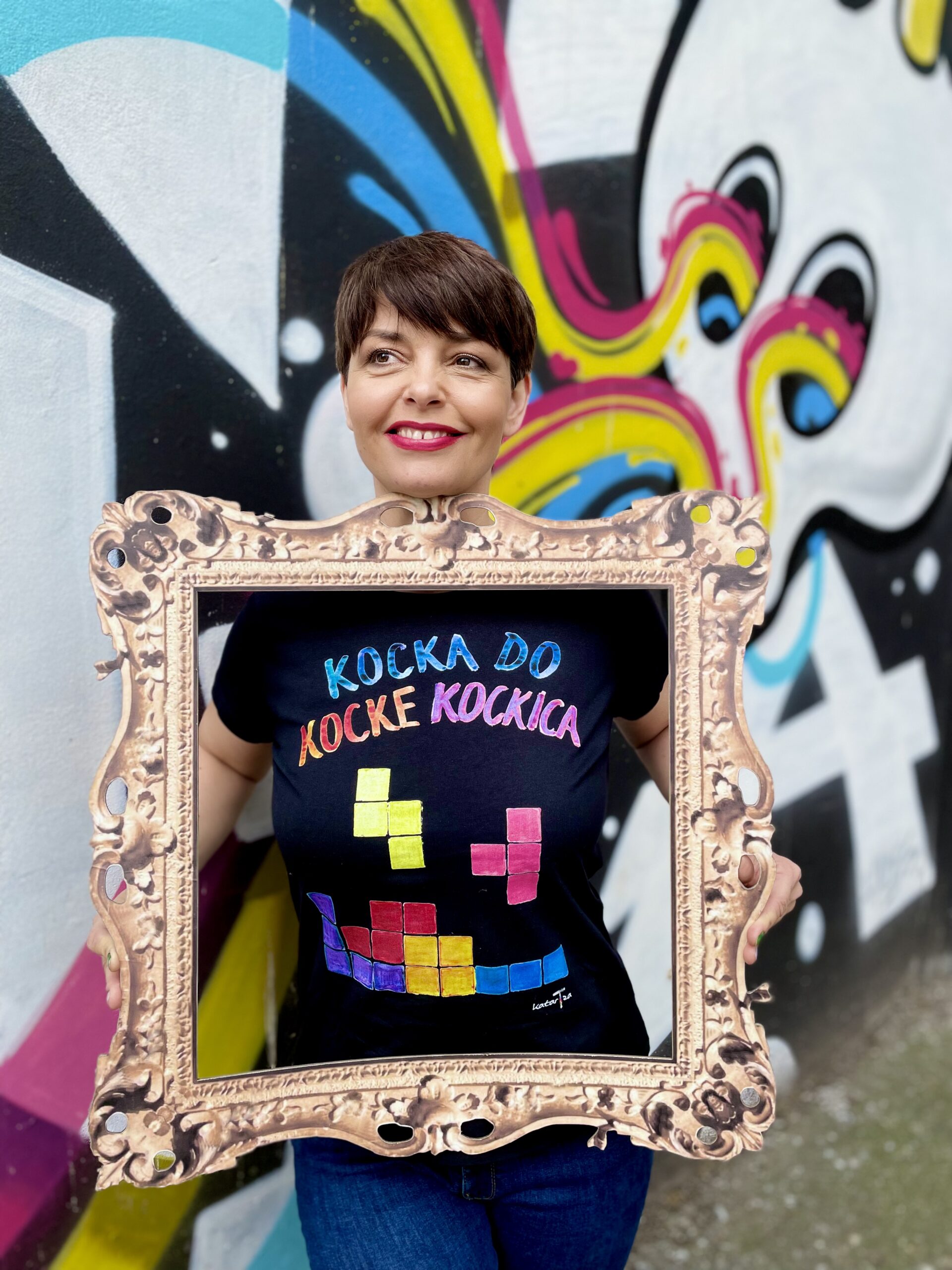 40,00KMMajica „Kocka do kocke-kockica“ se veže za zlatno doba dječijih TV emisija u ovom slučaju emisiju Branka (Miličevića) Kockice. Majica je dodatno ilustrirana elementima popularne igre „Tetris“ kao simbol odrastanja generacije osamdesetih.