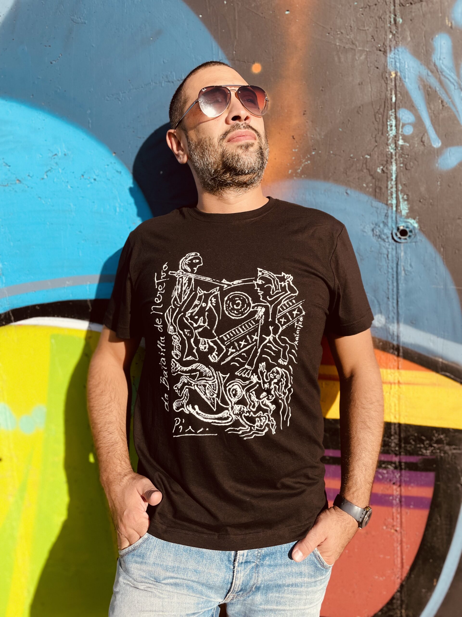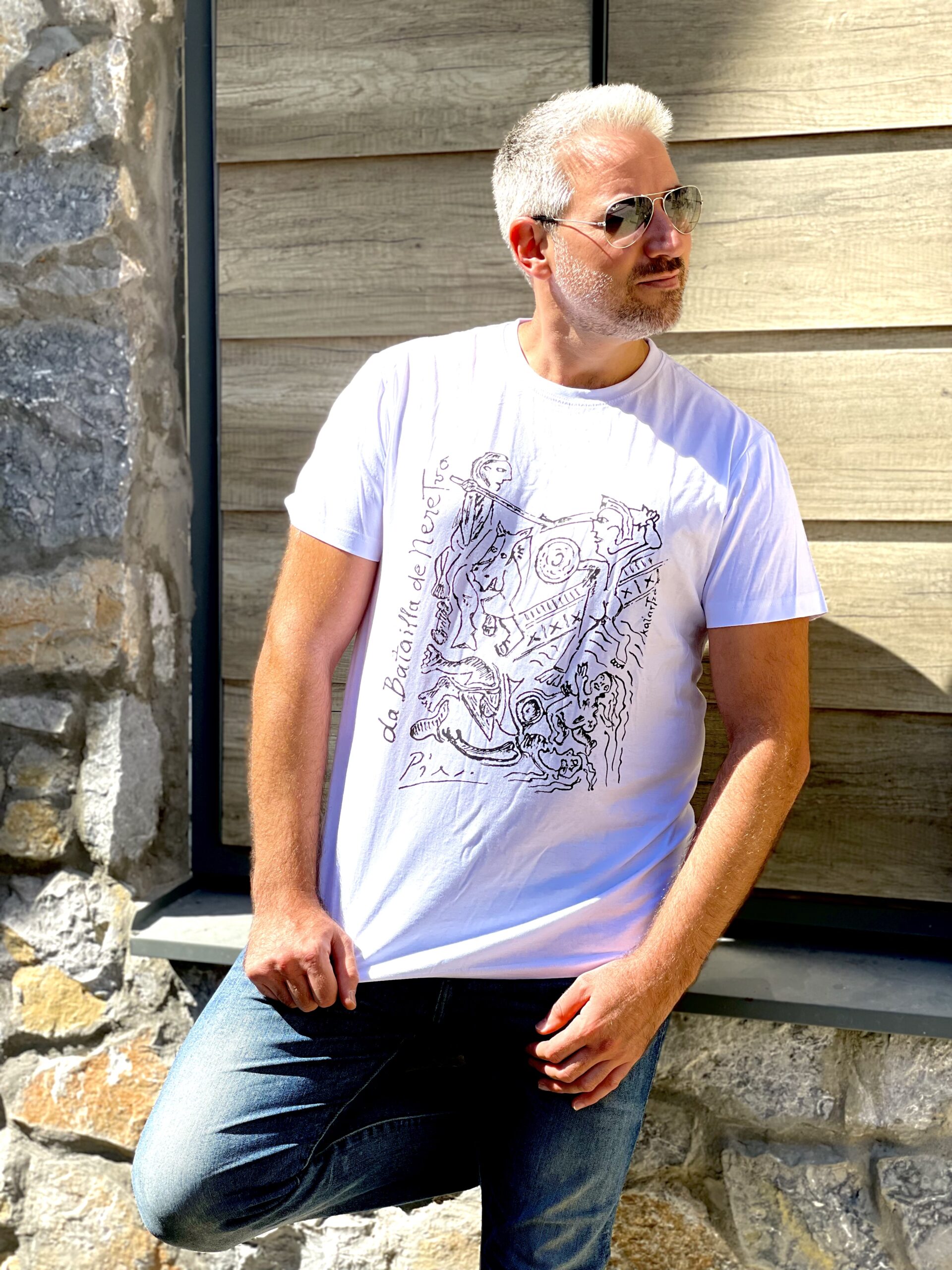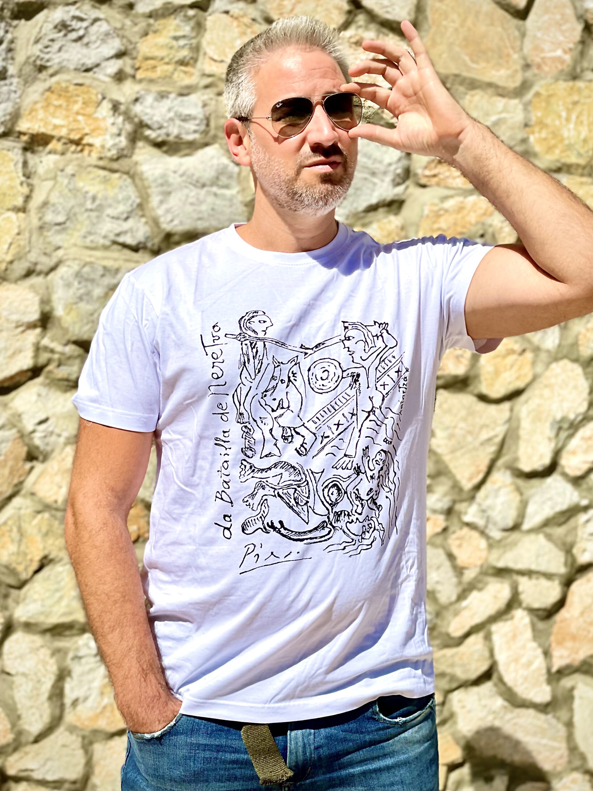 Majica „Bitka na Neretvi“ je monohromatski oslikan motiv Picassovog postera za film „Bitka na Neretvi“ Veljka Bulajića. Upoznali su se u Monte Carlu prilikom premijere Bulajićevog filma „Skopje 63“ koji je govorio o katastrofalnom potresu. Zanimljivo je da Picasso nije želio novčanu kompenzaciju za svoj rad, već je tražio sanduk najboljeg jugoslovenskog vina.