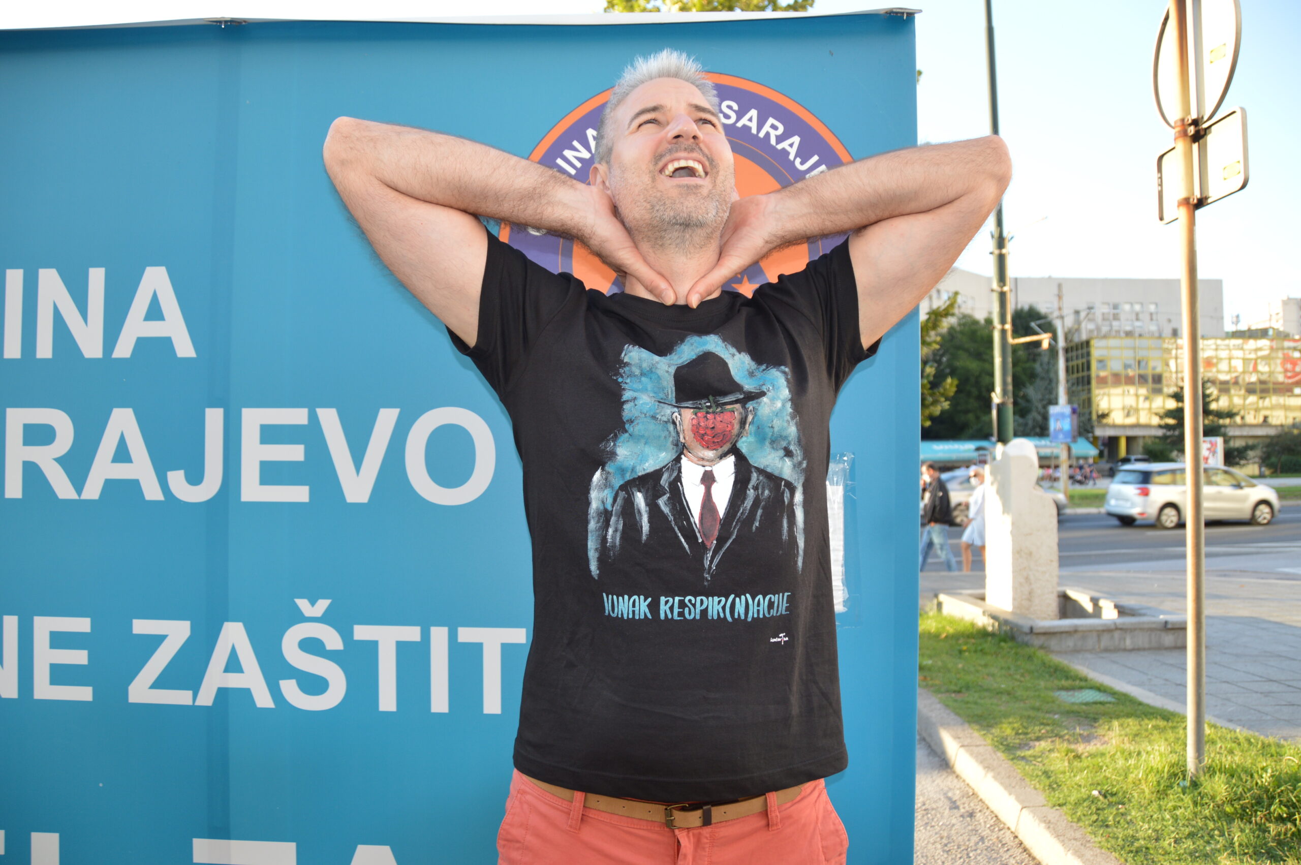 Majica “Junak respir(n)acije” je odgovor na temu afera respiratori-afera malina”, gdje je na čuvenom remek djelu Rene Magrittea “The Son of Man” mjesto jabuke simbolično zauzela malina.